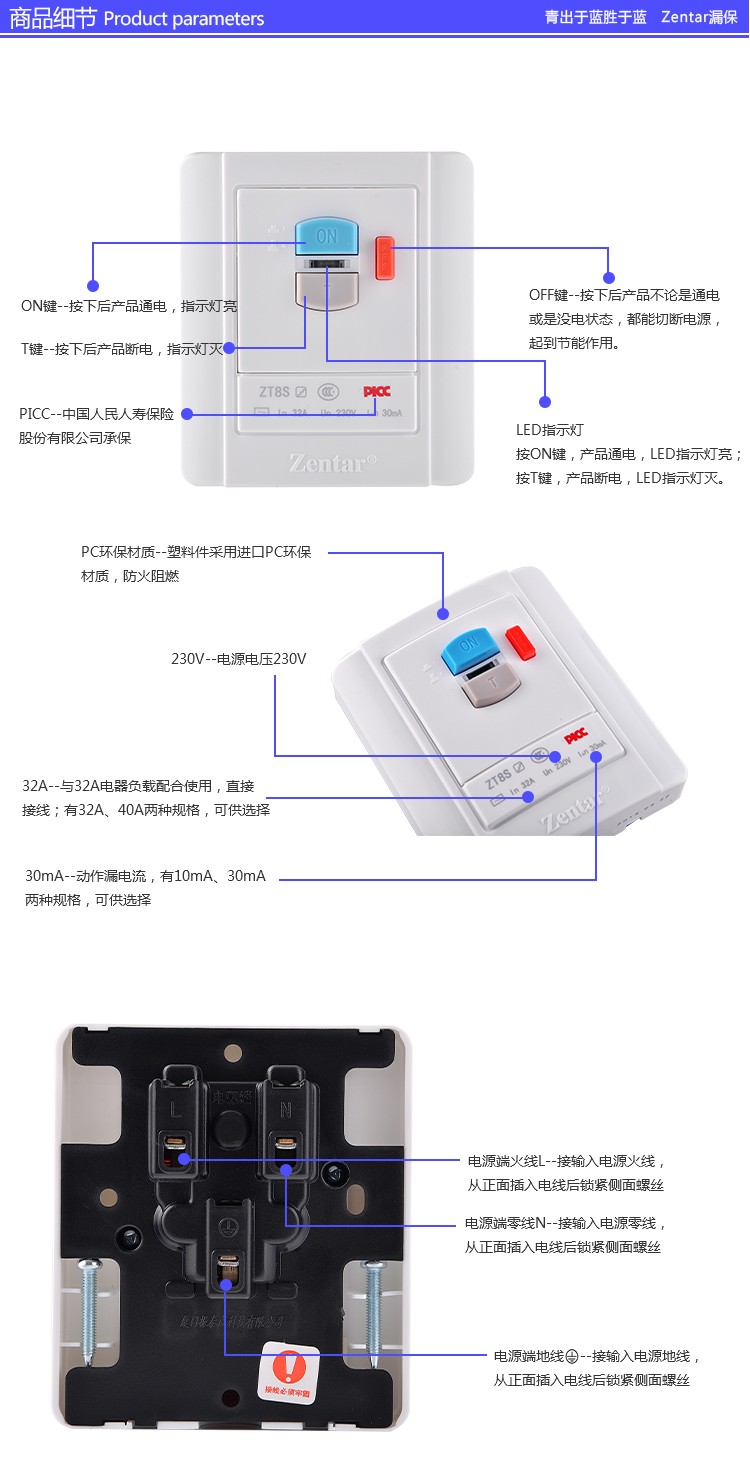 振泰成 柜機(jī)空調(diào)專用 漏電保護(hù)開(kāi)關(guān) ZT8S-32A